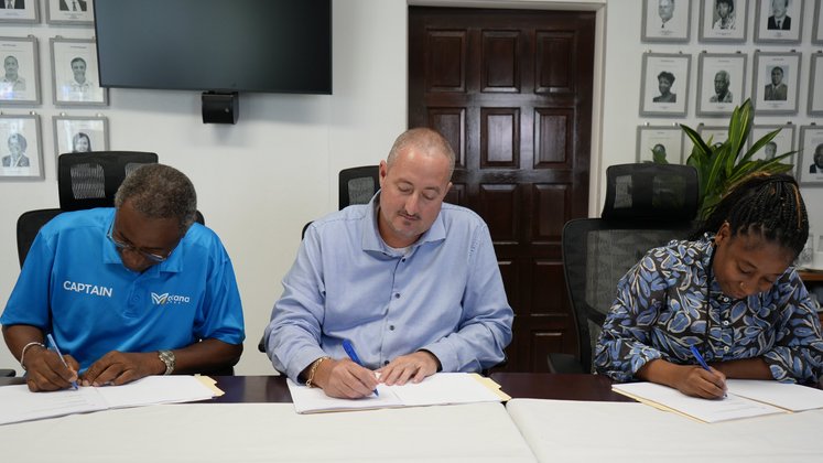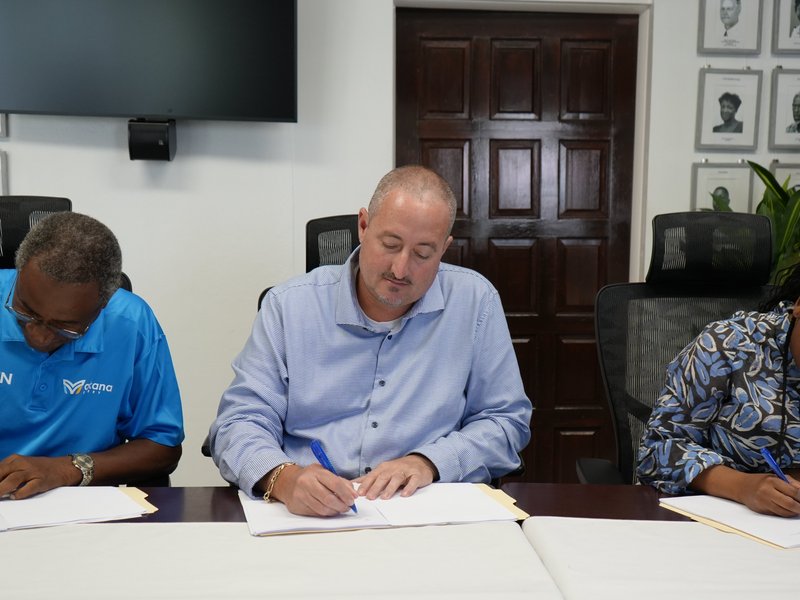 Present at the signing were Acting Island Governor Shamara Nicholson, Island Secretary Bram Streppel, Commissioner Bruce Zagers, Commissioner Rechelline Leerdam, and Alvaro Connor and Samuel Connor of Makana Ferry Service.